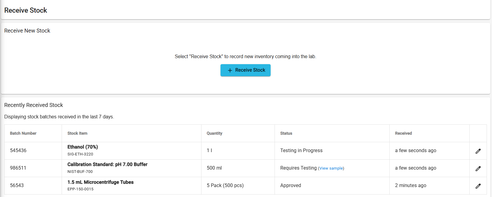 Stock Management operates within the same system labs already use for testing and quality processes.